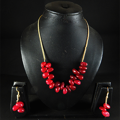This Gemstone Necklace with Earring Set is a sophisticated piece, designed to complement any outfit with its graceful allure. The carefully selected gemstones are paired with a gold-polished copper chain, adding a touch of luxury to this elegant accessory.
